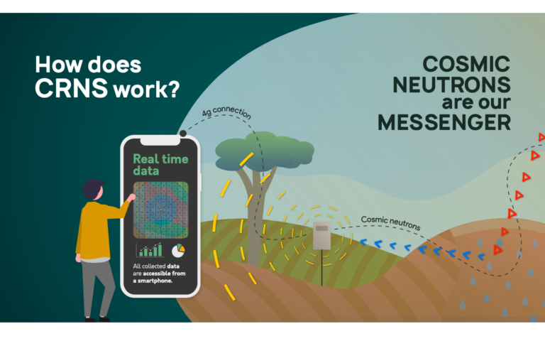 As some cosmic neutrons from space are absorbed by Earth’s water and some are reflected into the air, they can indicate how much water is present in the soil moisture, biomass water equivalent or snow water equivalent. Finapp translates these neutrons into more easily understandable numbers.