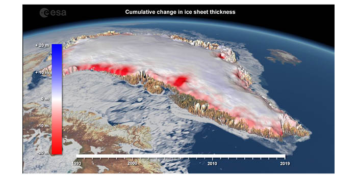 Dr Inès Otosaka from the University of Leeds, who led the study, said, “Ice losses from Greenland and Antarctica have rapidly increased over the satellite record and are now a major contributor to sea level rise. Continuously monitoring the ice sheets is critical to predict their future behavior in a warming world and adapt for the associated risks that coastal communities around the world will face.”