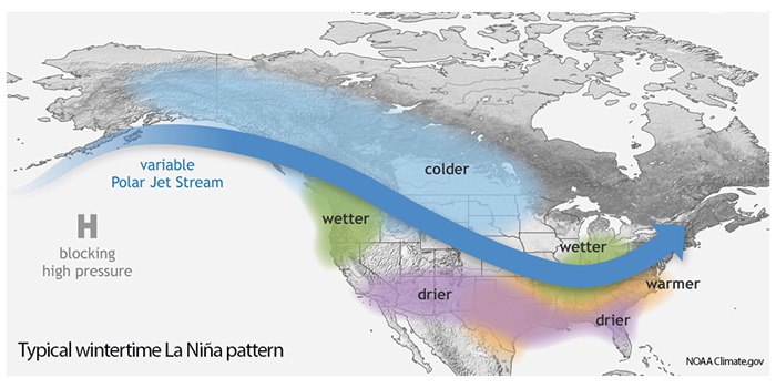A La Nina climate pattern has developed and is likely to persist through the winter, according to an advisory issued by NOAA’s Climate Prediction Center.