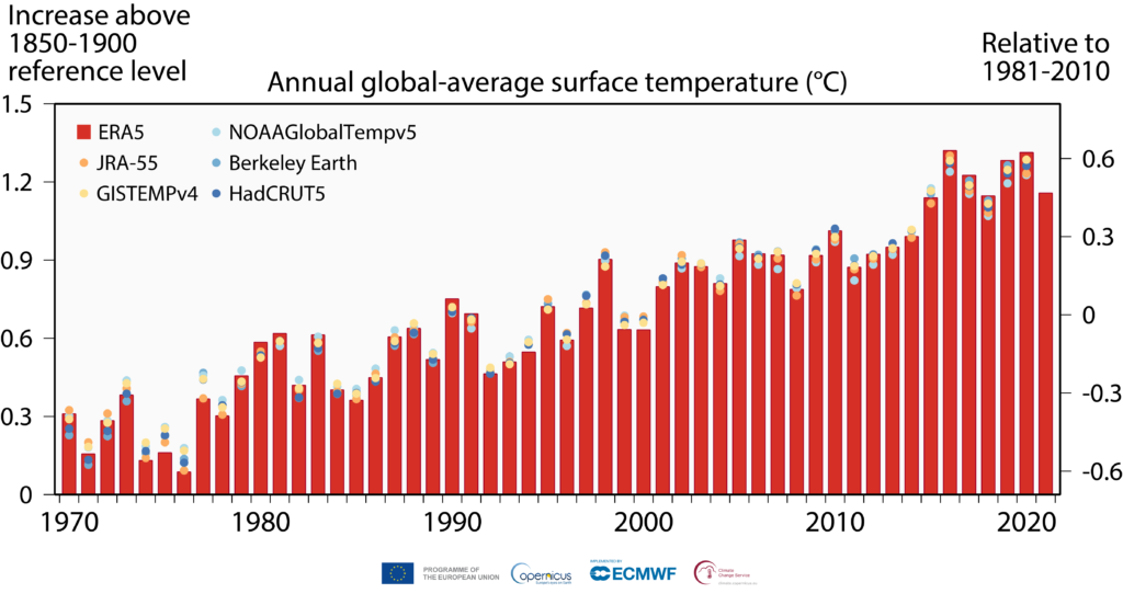 Carlo Buontempo, director of C3S, added, “2021 was yet another year of extreme temperatures with the hottest summer in Europe, heatwaves in the Mediterranean, not to mention the unprecedented high temperatures in North America. The last seven years have been the seven warmest on record. These events are a stark reminder of the need to change our ways, take decisive and effective steps toward a sustainable society and work towards reducing net carbon emissions.”