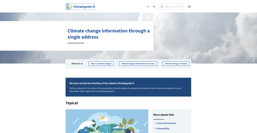 The user interface and appearance of the Climateguide.fi has been upgraded, and accessibility to the site has also been improved. In addition, the upgrade creates a foundation for updating and renewing content and for future expansion of the service. Some of the content is also available in Swedish and English.