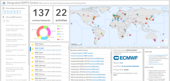 The list of mandatory GDPFS products for each designated center is shown interactively, with direct links to the corresponding metadata records on the WMO Information System (WIS). It creates a seamless link between GDPFS and WIS, allowing all members to quickly and easily discover information about GDPFS products on the WIS.