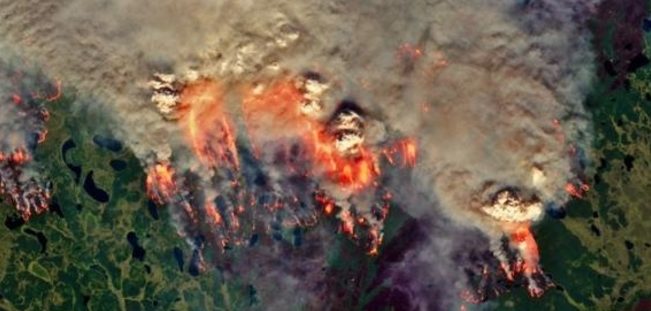 Satellite images from Europe’s Sentinel 3 satellites showed that the wildfires currently affecting Siberia inside and outside the Arctic Circle cover a width of about 800km. The fire front of the northernmost currently active Arctic wildfire reached over the 71.6N, less than 8km from the Arctic Ocean.