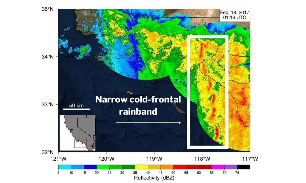 Researchers analyzing decades of winter storm data from southern California have created a catalog of rainbands to help improve predictions of localized, intense rainfall, which can lead to landslides and flash floods.